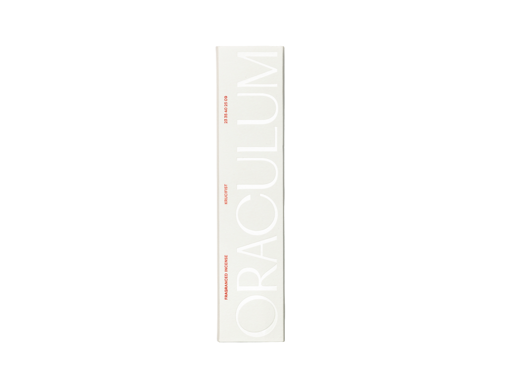 Otevírá se ostrým akordem pepře a bergamotu, který rychle přechází do sušší, strukturované linie cedru a pimentu. V srdci se rozvíjí levandule s hřebíčkem a pačulí, které vůni dodávají temnější hloubku a napětí. Základ tvoří guajakové dřevo, olibanum a ambra, zjemněné tonkou, jež celé kompozici propůjčuje teplý, kultivovaný dozvuk. Vonné tyčinky Krucifist provoní prostor suchou, lehce kouřovou stopou s dřevitě-kořeněným charakterem. Atmosféra působí koncentrovaně a sebevědomě, bez zbytečné sladkosti či tíhy. Vůně je výrazná, ale kontrolovaná. Vytváří jasně definovaný rámec prostoru.